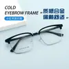 Nova sobrancelha Anti-azul Óculos Frame Half Frame Moda Armação Homens Retro Business Glasses Half Metal Flat Glasses