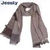 Comércio Exterior Europeu e Americano Masculino Transfronteiriço Novo Cachecol de Listras Tingidas em Fio Cachecol Masculino de Inverno Cor Pura Algodão e Linho Fabricante Exportação