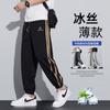Calças de seda gelada de cor sólida, de secagem rápida, finas, respiráveis, soltas, populares, para corrida ao ar livre, calças esportivas casuais
