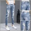 2021 Comércio exterior europeu e americano transfronteiriço Novos jeans masculinos Juventude Casual Slim-fit Pé pequeno Calças masculinas rasgadas