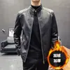 Jaqueta de couro masculina de alta qualidade tecido grosso inverno quente zíper cardigan bolso jaqueta de couro PU