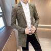 Novo corta-vento masculino 2021 marca de moda coreana moda bonito pied de poule longo casual casaco corta-vento de lã