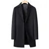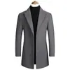 2025 Inverno Novo Casaco Lã Cor Sólida Abotoamento Simples Masculino Estilo Coreano Slim Comprimento Médio Trench Coat Atacado