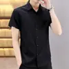 Camisa branca de verão Camisa masculina de manga comprida Slim-fit estilo coreano Juventude Cor sólida Camisa de manga curta Roupas masculinas de trabalho de negócios