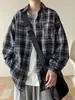 Camisa xadrez de fada masculina manga comprida, elegante, estilo coreano, outono, casual, solta, camisa duffian, jaqueta estilo Hong Kong