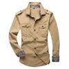 Primavera e outono transfronteiriços de algodão puro camisa casual de manga comprida casaco militar militar multi-bolso cor sólida workwear top camisa masculina