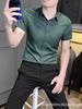 2023 Verão Masculino Nova Lapela Cor Sólida Manga Curta Camisa Casual Masculina