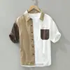 Camisa Masculina de Linho Retro com Retalhos de Manga Curta Tamanho Grande Verão Nova Solta Casual Bonita Fina Bordada