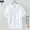Verão Novo Algodão Linho Camisa de Manga Curta Masculina Estilo Chinês Camisa Casual Linho Fino Manga Curta Lapela Top