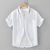 Camisa de linho casual masculina de manga curta Camisa de linho de algodão de verão Roupa de linho masculina