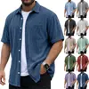 Camisa Casual de Veludo Cotele de Manga Curta Masculina de Verão Transfronteiriça da Amazon Europeia e Americana Camisa de Manga Curta de Praia