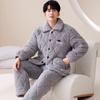 Pijama de lã coral masculino inverno forrado de lã engrossado quente três camadas acolchoado masculino roupa de inverno roupas de casa terno
