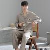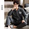 2025 Primavera e Outono Novo Pijama Masculino de Algodão Elástico de Manga Comprida Cardigã Solto Tamanho Grande Estilo Casual Conjunto Roupa de Casa