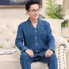 Pijamas de Outono e Inverno Masculinos de Algodão de Manga Comprida Roupa de Casa para Pessoas de Meia-idade e Idosas Cardigã Lapela Casual Solto Tamanho Plus