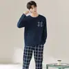 Pijama Masculino Inverno Fleece Coral Espessado Estudante Desenho Animado Pijama Longo Roupão Conjunto de Roupas de Casa de Inverno Tamanho Grande