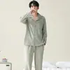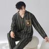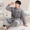 Pijama masculino outono e inverno algodão estilo coreano cardigã lapela calça de manga comprida plus size solto traje de casa pode ser usado fora