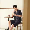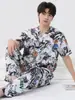 Pijama de seda imitação masculina verão manga curta fino estilo coreano calças masculinas para uso doméstico primavera gelo seda terno de duas peças