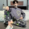 Comércio Exterior Transfronteiriço Pijama Masculino Manga Longa Primavera, Outono e Inverno Fino Tamanho Grande Desenho Animado Adolescentes Estudante Conjunto de Roupas para Casa
