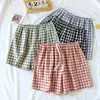 Calça de Pijama Simples Xadrez Feminina Masculina Shorts Verão Algodão Gaze Fina Calça de Praia Roupa Externa Casal Calças de Casa