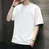 Algodão pesado verão moda cor sólida puro branco all-match solto interior meia manga camiseta manga curta homens top inferior