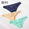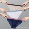 Cueca masculina de verão, de seda gelada, sem costura, fina, esportiva, sexy, cintura baixa, convexa em U, justa, lateral estreita, cuecas pequenas