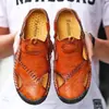 7239 Cross-border 48 Sandálias de tamanho grande Sapatos Masculinos Verão respirável sapatos de praia de couro genuíno Sandálias de couro de vaca costuradas à mão
