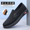 Sapatos de Pano Old Beijing Masculinos Casuais Slip-on Respiráveis Antiderrapantes Resistentes ao Desgaste Solado de Couro Sapatos de Trabalho Pretos para Motorista Cozinha