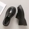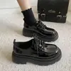 Celebridade da internet estilo britânico retrô bico redondo versátil estilo japonês sola macia couro envernizado sola grossa salto plataforma mocassins sapatos únicos sapatos pequenos de couro