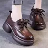 Sapatos Brancos de Couro Retrô Literários Femininos Plataforma Salto Grosso Aumentador de Altura Sapatos de Salto Baixo 2026 Primavera Novos Mocassins Versáteis com Cadarço
