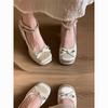 Sapatos Mary Jane da Moda com Laço Francês e Solado Grosso para Mulheres, Estilo Fada, Sapatos de Salto Grosso de Bico Redondo com Pequeno Salto