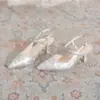 Sapatos Individuais com Pérolas para Uso Externo, Estilo Novo, Delicados e Versáteis, Salto Alto 2024, Sensação Retrô Diária, Laço para Encontros
