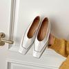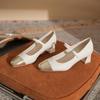 Design de cabeça quadrada em pele de ovelha macia, sensação de salto grosso de 3cm, sapatos brancos cor de leite retrô de boca média, sapatos novos de couro costurado