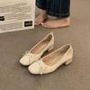 Sapatos Mary Jane para Mulheres 2025 Verão Diário Roupa de Trabalho Francês Elegante Primavera e Outono Suave Usável Laço Salto Grosso Flats Tendência