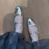 Sapatos Scarpin Quadrados de Salto Baixo com Saia, Novo Estilo Noturno de Verão 2025 Sapatos Delicados, Sapatos Mary Jane Femininos