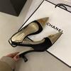 Sandálias de Bico Fino com Meia Pata, Saltos Agulha Color Block, Salto Alto Preto, Tiras Traseiras, Sapatos Versáteis, Novos Estilos Primavera Verão 2025