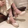 Sapatos de Salto Alto Estilo Francês Novo Chinês para Mulheres com Salto Bloco, Tira Única Elegante de Metal, Sapatos Mary Jane Retrô Inspirados em Chanel