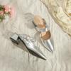 Sandálias de Salto Alto Francesas Femininas de Bico Fino com Pedras Preciosas, Salto Fino, Costas Abertas, Couro Envernizado, Bico Fechado - Nova Coleção de Primavera