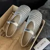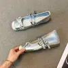 Sapatos Mary Jane Franceses de Boca Baixa Femininos 2025 Verão Novo Velcro Flats Prata Mesh Sapatos de Treino de Balé