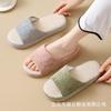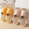 Atacado linho não cinza respirável absorvente de suor chinelos tecido textura de madeira roupa de casa mudo quatro estações algodão e linho mudo