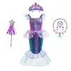 Vestido de Princesa Ariel Sereia Vestido Sereia Cauda de Peixe Vestido de Paetês Infantil Fantasia para Festa Cosplay Apresentação