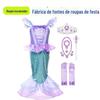 Vestido de Princesa Pequena Sereia Transfronteiriço vestido de sereia Ariel Vestido de Menina Vestido Longo Cauda de Peixe Infantil
