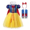 Vestido da Branca de Neve Europeu e Americano Mais Vendido com Laço e Manga Bufante Vestido Infantil Vestido com Véu Bufante Frozen