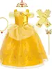 A Bela e a Fera Vestido da Bela Europeu e Americano Mais Vendido Amarelo Sino Sem Mangas Vestido de Menina Princesa
