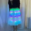 Nova Saia Branca Luminosa de LED com Saia Grande Fantasia de Performance Dança do Ventre Cabelo Adereços de Dança Criativos Malha de Três Camadas Meio Corpo I