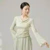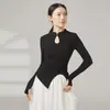Traje de Dança Moderna Adulto Estilo Chinês Roupas de Prática de Dança Feminino Qipao Estilo Chinês Roupa de Dança Manga Longa Dança Clássica Ajuste Slim Top