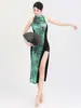 Roupa Nova de Dança Padrão Nacional de Verão, Elegante Retrô, Roupa de Performance para Dança Latina, Design Gola Halter Saia Cheongsam Estampada