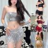 Europeu e Americano nova dança do ventre cadeia de cintura dança quadrada Dança indiana linha dança meio círculo triângulo lantejoulas desempenho conjunto de ensaio