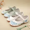 Orquídea Salto Baixo Estilo Chinês Velho Pequim Mãe Vintage Tecido Bordado Sapatos Femininos Estudante Dança Quadrada