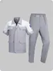 Roupas de Trabalho Juvenis para Primavera e Outono com Faixas Refletivas Color-Blocking, Uniformes de Fábrica Respiráveis de Manga Curta para Proteção do Trabalho com Logo Conjunto de Roupas de Trabalho