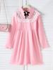 2025 Exportação Transfronteiriça Verão Estilo Coreano Meninas Gola Lapela Manga Longa Cor Sólida Comprimento Médio Saia Renda Patchwork Cintura Vestido